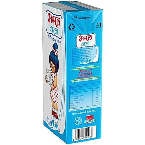 Amul Taaza Homogenised Toned Milk, 1 L Carton
