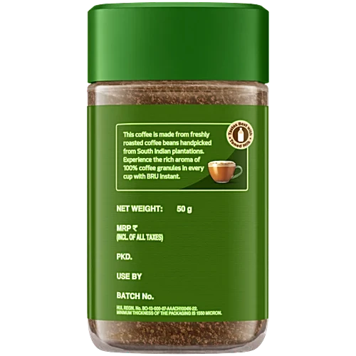 BRU Instant Coffee Powder – Rich Aroma Granules, 50 g Bottle