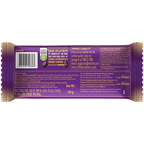 This chocolate is a treat for everyone. It combines the smoothest of milk chocolate d with a layer of vanilla cream and oreo cookies slathered with another layer of rich creamy chocolate. It truly stands for the best tasting chocolate with its riveting taste