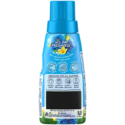 Want your clothes to shine like new every day? A small step of Comfort After Wash Fabric Conditioner Morning Fresh (Blue) 220 ml gives your clothes unbeatable shine that detergent alone can’t deliver. Even if you use the best detergents, repeated washing can tangle cloth fibres, making them rough, dull & lifeless. Taking a small step of Comfort After Wash Fabric Conditioner nourishes the cloth fibres damaged by detergent, giving them new like shine even over repeated washing. Not only shine, our range of fabric softeners gives visible softness to your favourite clothes while also delivering a long-lasting freshness.