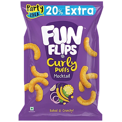 Indulge in the delightful and guilt-free snacking experience of Fun Flips Curly Puffs in the refreshing Mocktail flavour. These baked, crunchy puffs are packed with the goodness of whole grains, offering a healthy and satisfying on-the-go option. Bursting with the refreshing taste of mocktails, these puffs provide a unique and flavourful snacking adventure. Baked to perfection with a light, crispy texture, Fun Flips Puffs are the perfect choice for those seeking a delectable, yet guilt-free, snacking indulgence. Treat your taste buds to the delightful combination of flavour and nutrition with these delectable Fun Flips Curly Puffs.