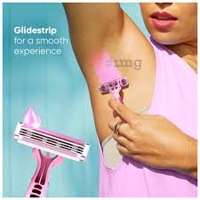 Glide strip with aloe vera extracts. 3 blades to leave you with smooth skin. Flexible head which glides along your curves. Easy grip rubber handle for easy regular use in the shower. Lubricating Strip Present.