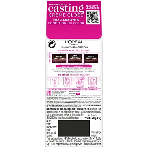 L’Oreal Paris Casting Creme Gloss – Small Pack, 45 g 400 Dark Brown