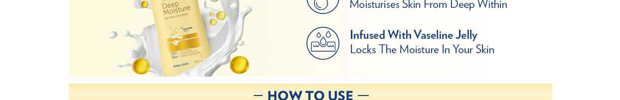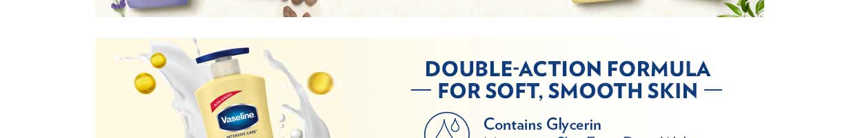 The Vaseline Intensive Care Deep Moisture Nourishing Serum In Lotion, 600ml is a nutrient-rich, ultra-light soothing lotion that provides dry and rough skin with vital comfort and hydration. This Vaseline moisturizer is suitable for both day and night skincare routines and is suitable for both men and women. This body lotion for dry skin is crafted with a double-action formula containing glycerine and Vaseline jelly that retrieves the skin’s lost moisture. Our deep moisturising and fast-absorbing lotion protects the skin from damage and dryness caused by the harsh seasons, leaving it timeless and radiant throughout the day.